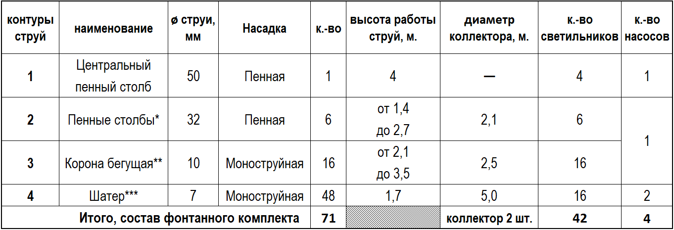 ОПИСАНИЕ ФОНТАННОГО КОМПЛЕКТА ПО КОНТУРАМ