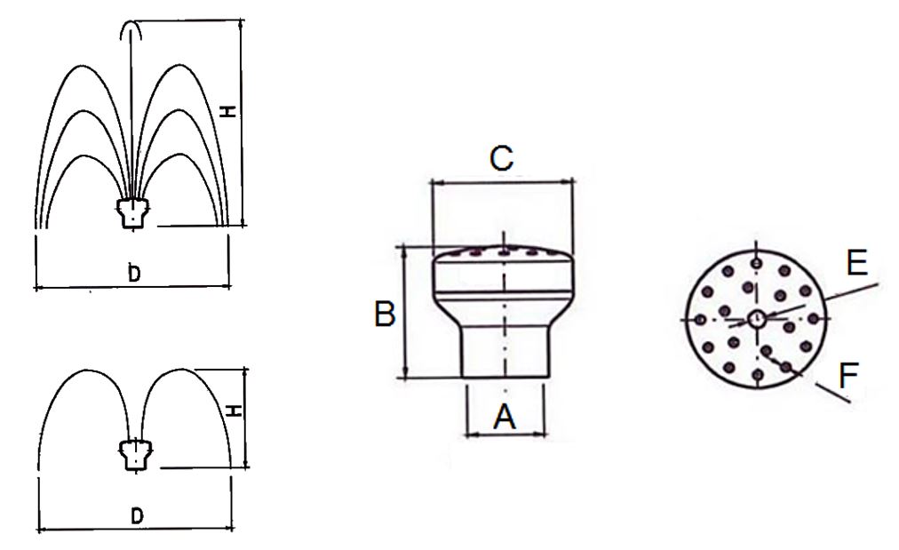 Эти насадки образуют множество струй, которые по форме напоминают букет. Меняя углы наклона, можно создавать многоуровневые водные картины. Эта насадка может использоваться как в малых, так и в больших водоемах благодаря широкому спектру размеров.