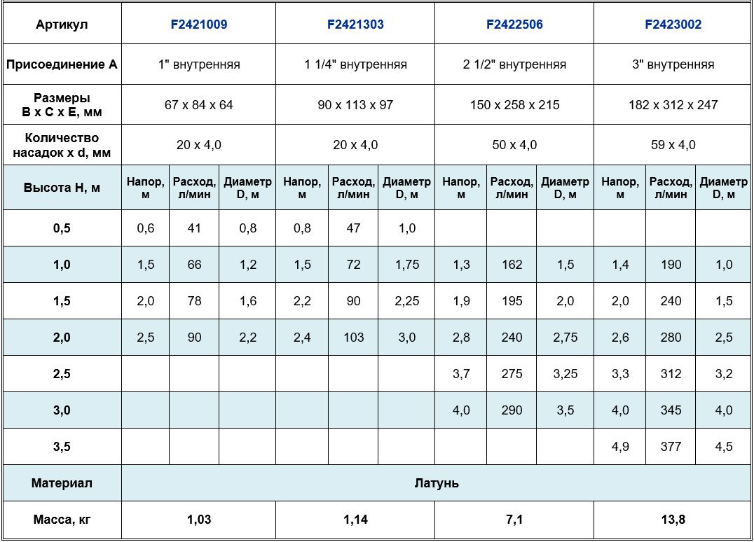 Высота струи max, м