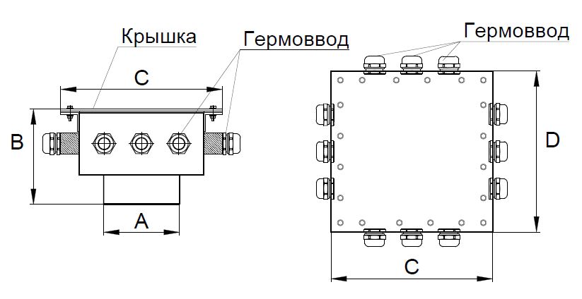 Каждый кабельный ввод имеет резьбовое соединение для монтажа к трубопроводу с кабелем.